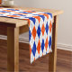 Bring bold colors to the table! This orange and blue argyle table runner is perfect for fans who figuratively bleed orange and blue. The classic diamond harlequin pattern in vivid orange, deep navy blue, and crisp white turns meals and celebrations into spirited events.