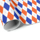 Show your true colors with bold style! This orange and blue argyle wrapping paper is perfect for fans who figuratively bleed orange and blue, bringing school spirit and classic charm to every gift. The repeating diamond harlequin pattern blends bright orange and deep navy blue on crisp white, creating a timeless, energetic design.