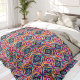 Orange and Blue Geometric Flowers Bohemian Fleece Blanket