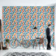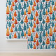 Winter themed watercolor blue and orange pine tree pattern stick and peel wallpaper.