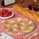 This is elegant mid century modern geometric half circles pattern in orange, amber, brown and beige. It's great looking paper plate for anyone who love retro designs.