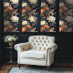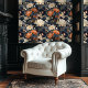 Orange and Gray Chinoiserie Style Floral Wallpaper