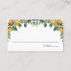 Escort cards featuring branches of greenery with orange clementines. Write in guests' names and table numbers.