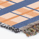 A quality printed throw has its advantages. This is a much finer weave throw than its loopier cousins, and though lighter, it is worth the investment for custom room accessorizing. The back is much prettier than the typical brown, and the fringe on the long sides very vivid, the selvage nicely done. Before photographing, I washed the throw in cold water, delicate, with a thicker woven throw the same size. On tumble dry low, this throw was dry in half the time as the other. This is a very practical quality if you use throws for furniture covers or to wrap up in frequently. The sleekness of the fabric makes it a great layer for accenting or protecting without the feeling of sitting on too much stuff. Perfect for napping or when you feel a light chill coming on. The color printing is beautiful and on this fabric, matched the design and color of my Photoshop image. This is an advantage for blending room fabrics and colors. The fringe on the short sides prints the colors from the design image and therefore varies from the side fringe. I streaked a white fractal line through the plaid pattern to give the illusion of weaving. This printed as crisp as an illusory thread, and put some white in the short side fringe, showing another advantage of print vs loomed- for artistic purposes, line lines, detail, and color integrity can be planned and preserved. My loomed throws have color limitations and more of a needlepoint texture. Print throws reproduce an exact image. The throw felt a little stiff straight out of the package, but this went away in the first delicate wash. Of course I searched the wash water for ink or bleeding and there was none.
