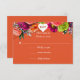 Bold orange with bright and colorful roses. Artistic wire element add a touch of whimsy, white heart center, White lettering on orange-age color.