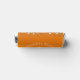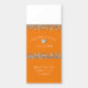 This modern design features a graduation hat and confetti in silver on a background of Orange with white text.
