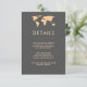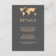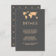 This chic, modern wedding guest information card features a smoky gray background with an orange colored world map and matching text. Perfect for the wedding of any couple who loves to travel, or anyone having a destination wedding. You can use these cards to include information about your wedding reception, driving directions, accommodations, and anything else you need your guests to know!