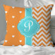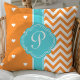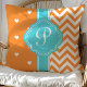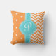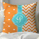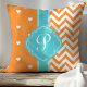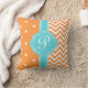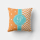 Orange and Turquoise Monogram Hearts and Chevron Throw Pillow