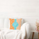 Add a pop of color and personality to your space with this vibrant orange and turquoise throw pillow. Featuring a playful pattern of hearts and chevrons, along with a customizable monogram, this pillow is perfect for adding a touch of fun and style to any room. The bold colors and modern design make it a perfect statement piece for your living room, bedroom, or office.