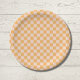 Orange and Unbleached Silk Checkerboard Paper Plates