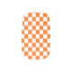 Nail art with an orange and white checkerboard pattern. Customizable.