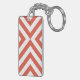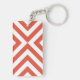 Alternating reddish orange and white chevrons converge in this bold, original geometric pattern.