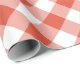 Stylish wrapping paper features reddish orange, light orange, and white squares in a bold diagonal gingham plaid.