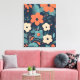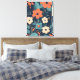 Orange and White Floral Pattern on Navy Blue Backg Canvas Print