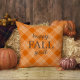 Orange and White Gingham Plaid Happy Fall Y'all Throw Pillow