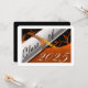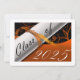 Orange and white graduation card with a diploma and year of graduation on it. The back is a black background with white lettering for the graduation annoucements.