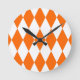 Orange and White Harlequin Diamonds Check Design Round Clock