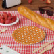 Orange with white patterned paper plates. Cool for Halloween table setting and get togethers.