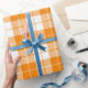 A wrapping paper designed with an orange and white plaid pattern in large size. Customize the white background among other options.