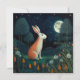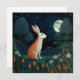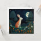 An orange and white rabbit is enjoying the moonlight in a bed of flowers.
