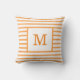 Orange and White Stripes Custom Monogram Cotton Throw Pillow