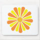 Painting of bright yellow and orange petals coming out of circles of yellow and orange, is printed on mousepads. Looks like a flower and or energy burst.