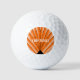This art deco design golf ball is white and dimpled, with a diameter of at least 1.680 inches (42.67 mm) and a mass no more than 1.620 ounces (45.93 grams). The dimples on the surface are crucial for aerodynamics, reducing drag and allowing the ball to travel farther. Golf balls are designed with multiple layers to optimize distance, spin, and feel. Orange art deco design golf ball