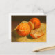 Post card featuring a traditional still life painting of oranges. Artwork: Oil pastel. Copyright: Dominic A. White.