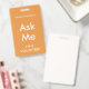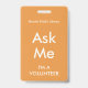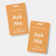 Orange "Ask Me" badges for volunteers, teachers, docents, guides, event organizers for special events, such as weddings, craft fairs, home & garden shows, charitable events, business and corporate functions. The typography color is pale ivory which gives this badge a modern look.