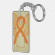 The guardian angel keychain features the art of a orange awareness ribbon angel painting. The orange awareness angel ribbon art keychain can be customized with personalized messages to make great cause keychains for fundraisers, awareness gifts, or other special events or occasions.