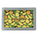 Orange slices and leaves. Seamless pattern. Custom background color. Custom text.