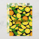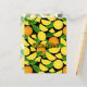 Orange slices and leaves. Seamless pattern. Custom background color. Custom text.