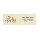 An address label featuring an illustration of an orange bicycle at left. Personalize with your address to the right of the bike.