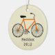 An ornament featuring an illustration of an orange bicycle. Personalize with your name under bike.