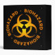 Black binder with orange biohazard symbol and warning text on front and back. Makes a cool science or gaming notebook!