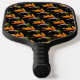 Pickleball paddle that features the photo image of an orange bloom of the tropical Bird of Paradise Plant printed in a repeating pattern on a black background. Also referred to as a Crane Flower. A stunning, floral design! Select your pickleball paddle handle color as desired and other options.