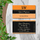 Make a lasting impression with this stylish business card design featuring orange and peach colored stripes on black with pretty shimmery small gold decor.