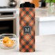 Orange Black Autumn Tartan Plaid Pattern Monogram Thermal Tumbler