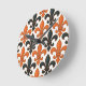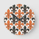 Orange Black Baroque Fleur-de-lis Pattern Design Round Clock