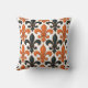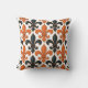 Orange Black Baroque Fleur-de-lis Pattern Design Throw Pillow