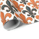 Orange Black Baroque Fleur-de-lis Pattern Design Wrapping Paper