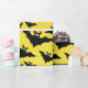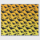 Spooky and adorable Halloween flock of black bats with eyes on yellow orange ombre gradient.