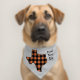This fun bandana collar for the proud Texas Dog has the outline of the state filled with an orange and black buffalo plaid pattern. At one side is the script text in black "Proud Texas Dog", but you may easily change it or personalize it for your pet. Everything is placed on a pale gray background.