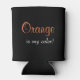 Great can cooler with a design noting your color so you know which can is yours! The background is black. Text for the saying is "Orange is my color!" in a nice typography mix of orange and white. Check out our other "my color" can coolers also!