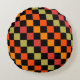 Orange Black Checkered Gingham Pattern Round Pillow