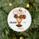 Lightweight, smooth, pure white ornament with nice sheen. Perfect size to be seen from across the room ... and to attract closer inspection! Price was great for ordering enough for the whole family! Clear, bold black design just as requested. Matches the order exactly. Just so nice!