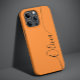 Orange Black Elegant Calligraphy Script Custom Personalized Name iPhone 14 Smart Phone Cases features a modern and trendy simple and stylish design with your personalized name in elegant hand written calligraphy script typography on a orange background. Designed by ©Evco Studio www.zazzle.com/store/evcostudio
