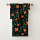 Orange Black Flower Watercolor Pattern Bath Towel Set. Pretty watercolor orange flowers on a black background. This floral pattern is hand-drawn. Vivid colors for your bathroom. Modern, stylish and chic towel set. Perfect as a gift.