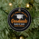 This modern orange and black custom senior graduate Christmas ornament features your high school or college name for the class of 2026. Customize with your graduating year under the chic handwritten script and white grad cap for a great personalized graduation gift.