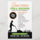 This minimalist and professional flyer design is perfect for showcasing your lawn care and landscaping expertise. The bold silhouette of a person mowing a lawn communicates your services instantly while the clean white background emphasizes your contact information.